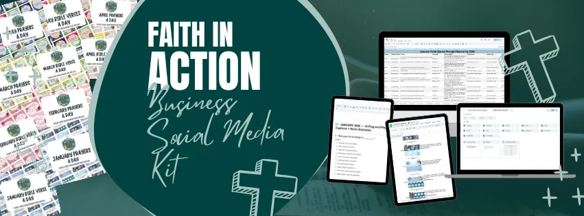 This all-in-one kit gives you a full year of Scripture graphics, prayer posts, captions, prompts, and plug-and-play content designed specifically for Christian entrepreneurs who want to let their faith shine through their business.